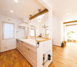 無垢の床・木の梁・木目のキッチン