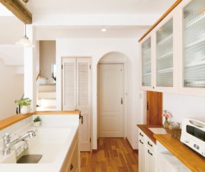 ウッドワンの無垢の扉のキッチンがカワイイ