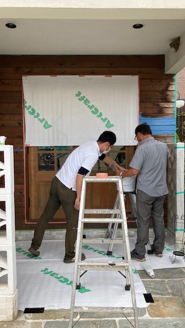 そしてお次はドア枠~、養生もしっかりと◎。