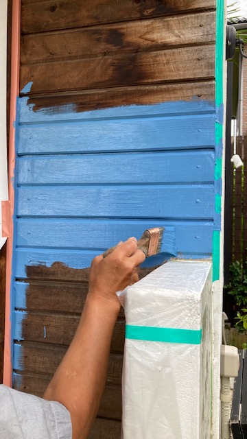 塗るのは高防カビ性、強力ヤ二止め効果のある水性塗料。