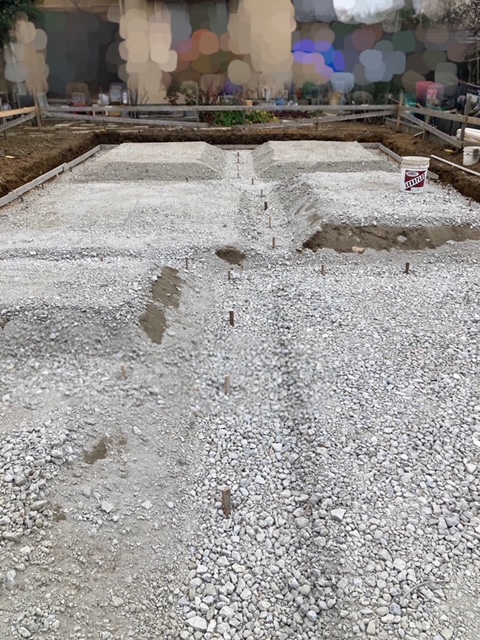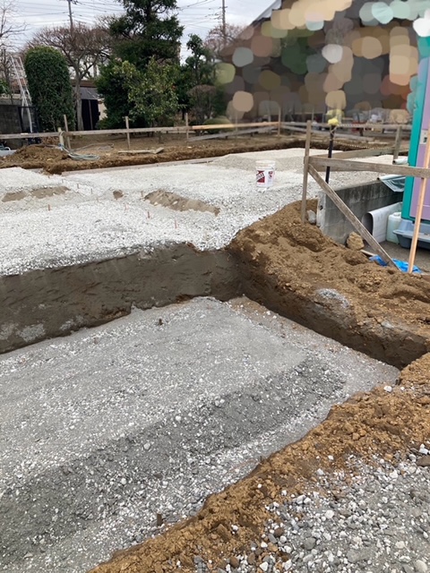遣り方、根伐りを終え、石材を敷き詰め固めたところです。