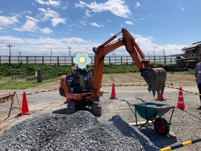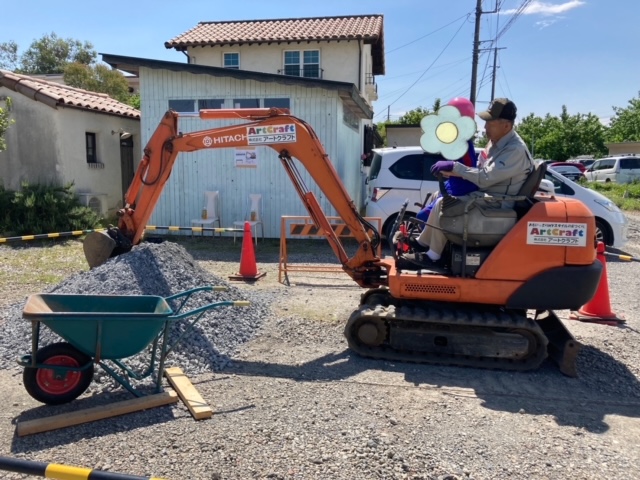 基礎屋さんと一緒に砂利をすくって一輪車へ入れました!