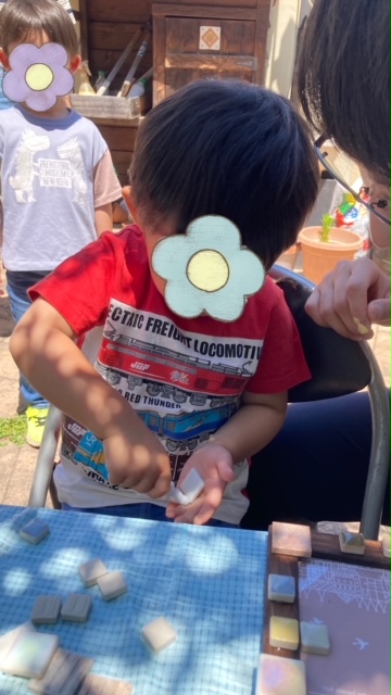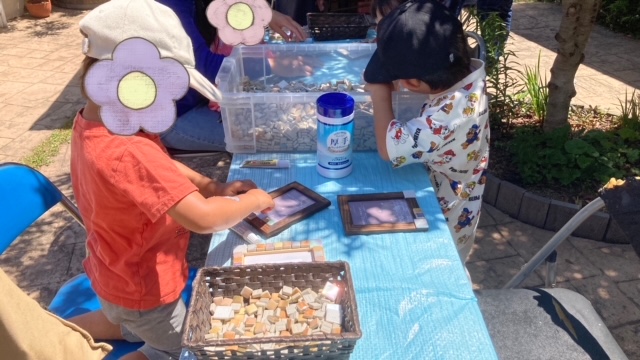 タイル屋さん体験(モザイクフォトフレームづくり)です。