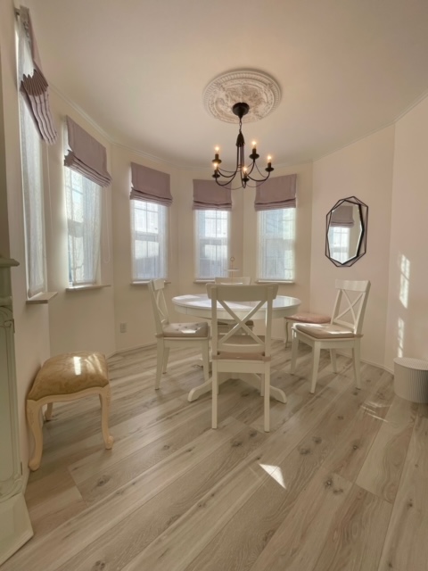 陽の光が入り家族の会話が弾む多角形のダイニングルーム。