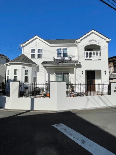お家を囲う白塗り壁とフェンスで海外に来ているような雰囲気です。