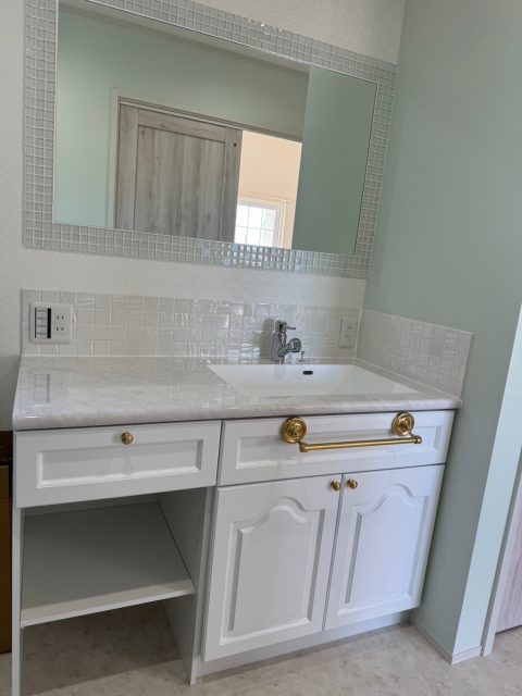 まずは、オーダー製作の洗面と奥につながる浴室は、