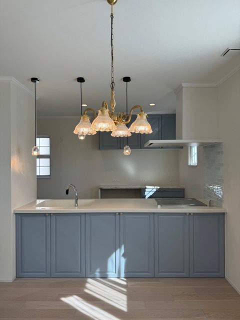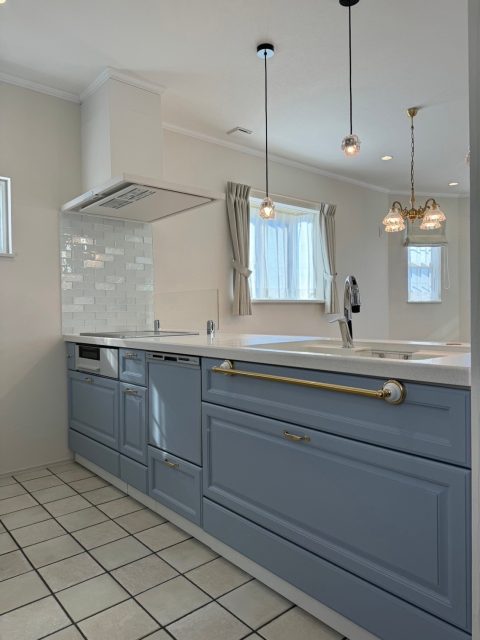 ↓: くすみブルーがアクセントのキッチン ⿻*