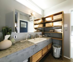 洗面台は、セメントの打ちっぱなしのような