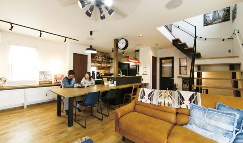 家族の笑顔が自然と集まる、開放的なアメリカンスタイル。