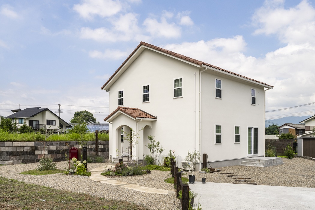 自然と調和する、白い漆喰のナチュラルハウス