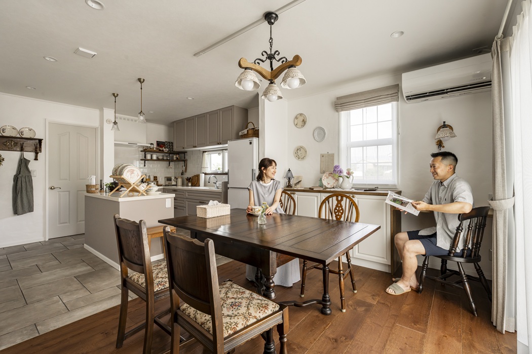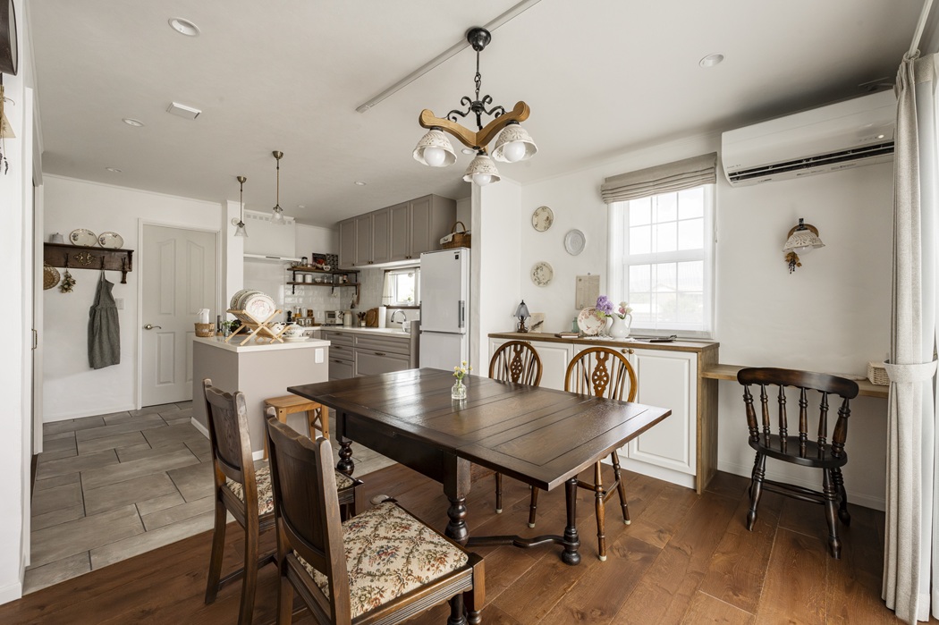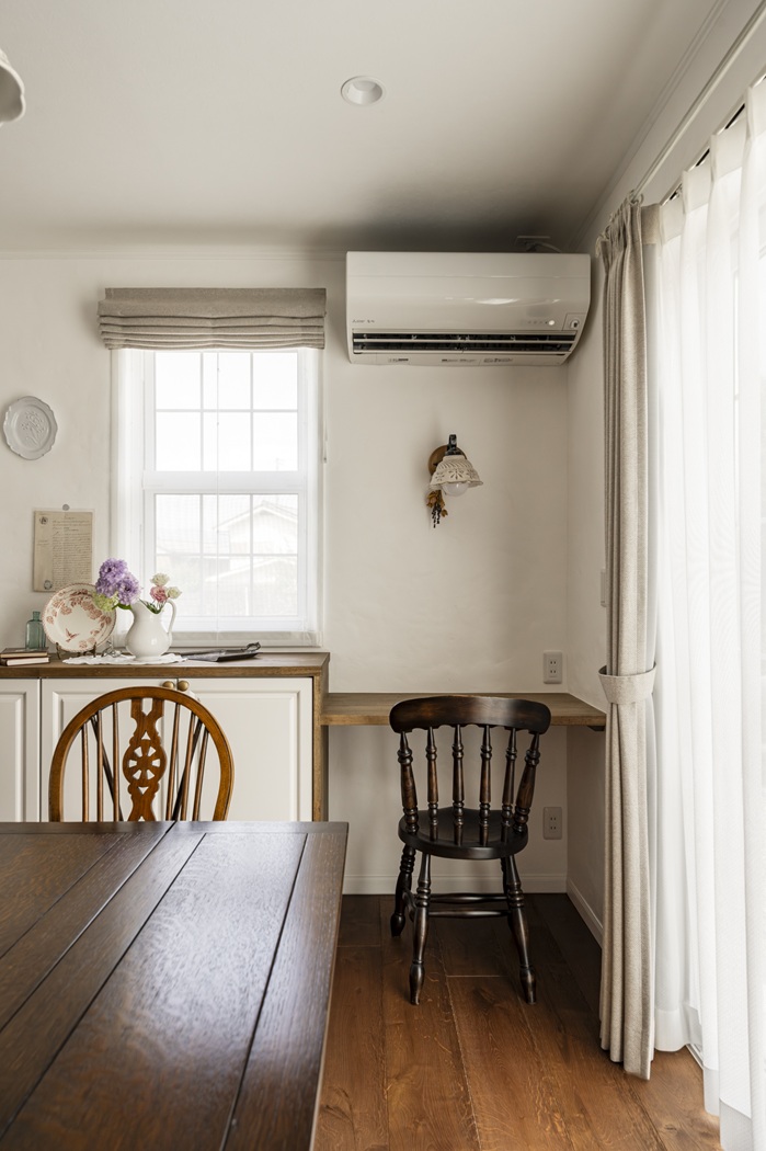 漆喰や木材などの自然素材と、アンティークなテイストを丁寧に組み合わせました。