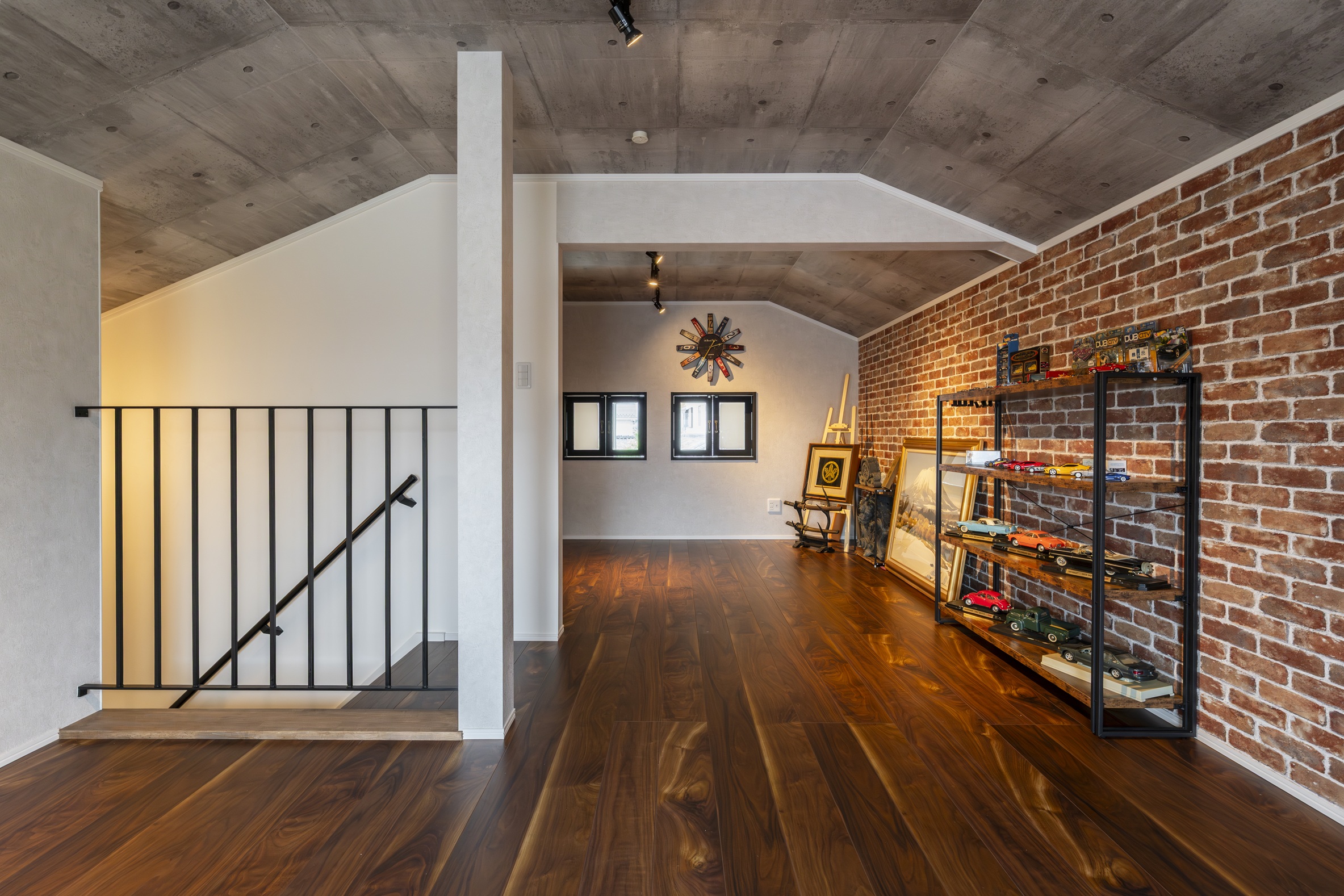 ご主人の趣味である旧車やインテリアが映えるよう、内装・外構ともに細部まで打合せを重ねています。